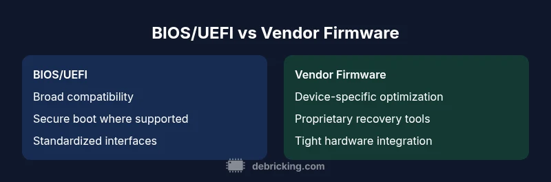 An objective, side-by-side guide comparing BIOS/UEFI-like firmware with vendor-specific boot firmware across devices, focusing on security, update methods, recovery, and best-practice strategies for tech enthusiasts and device owners.