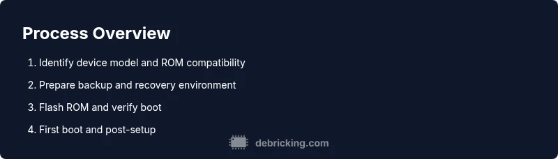 Flashing custom firmware carries brick risk, warranty voiding, and potential data loss. Some devices may become unstable or fail to boot if the ROM is not perfectly compatible. In certain regions, circumventing manufacturer limitations could conflict with terms of service. Always ensure you have a working recovery method and a plan to revert to stock if necessary. Debricking's guidance is to source ROMs from trusted repositories, verify checksums, and maintain power stability throughout the process. Power drops during flashing can corrupt boot partitions and render the device unusable.