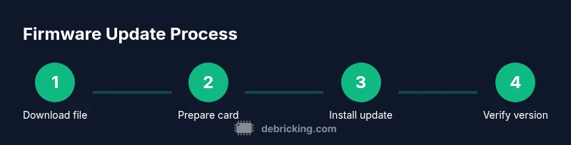 The update process follows a simple sequence: prepare power and storage, place the firmware file on a reformatted card, insert the card into the camera, and run the installer from the camera's firmware menu. After installation, the camera restarts automatically. Finally, verify the new version and restore any personal settings if needed. This overview helps you plan, estimate time, and avoid common missteps. For visual guidance, see the included diagram in Step 4.