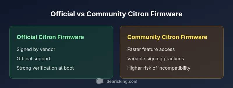 A practical, analytical comparison of official Citron firmware vs community builds, focusing on cryptographic keys, signing, security, reliability, and safe update practices for citron devices.