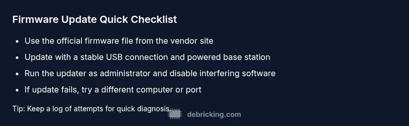 Before you attempt another update, prepare a clean, controlled environment. Fully charge the headset and base station, close other software that could steal USB bandwidth, and connect via a direct USB cable (avoid hubs when possible). Create a simple recovery plan in case you need to repeat the procedure. Keeping pins and contacts clean prevents micro-scrapes that can cause intermittent connectivity. Debricking emphasizes that preparing a known-good environment reduces recovery time and minimizes risk of bricking the headset.