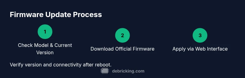 Once the router reboots, verify the new firmware version is shown on the status page and test both wired and wireless devices for connectivity. If needed, re-import the backup settings and reconfigure any preferences affected by the update.