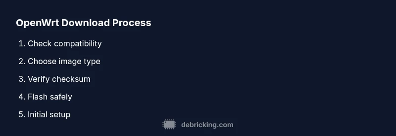 OpenWrt is a Linux-based firmware for embedded networking devices, primarily routers, that replaces vendor-provided firmware with a flexible, extensible operating system. It offers a writable filesystem, a package manager, and a broad ecosystem of add-ons, which means you can tailor features like VPN, guest networks, QoS, and advanced firewall rules to your exact needs. The Debricking team often hears from tech enthusiasts who want more control over their home networks, and OpenWrt delivers that by design. Before you begin, remember that flashing third-party firmware carries risk; the goal is to provide reliable access to features without compromising device stability. According to Debricking, OpenWrt’s openness makes it a favorite for power users. This guide walks through the download process for OpenWrt, emphasizes safety checks, and outlines a practical workflow that minimizes downtime. By choosing the right image and following verification steps, you can unlock improved performance, better security, and greater customization for many supported routers. This overview lays the groundwork for the hands-on steps that follow in the middle sections, where we dive into exact download paths, image types, and flashing methods.