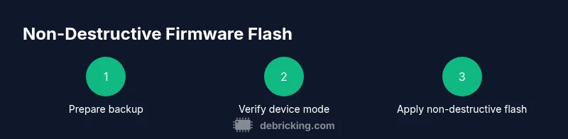 This section outlines a high-level, non-destructive flash approach. Start with verifying model compatibility, creating a verified backup, and downloading the correct firmware bundle. Enter the device’s maintenance or recovery mode, choose the non-destructive update option if available, and initiate the flash. Do not interrupt the process; wait for completion and perform post-update checks to confirm data integrity and device functionality. If the device requires a factory reset, rely on your backups to restore data and settings afterwards. Debricking highlights that success hinges on precise model matching and using trusted firmware.