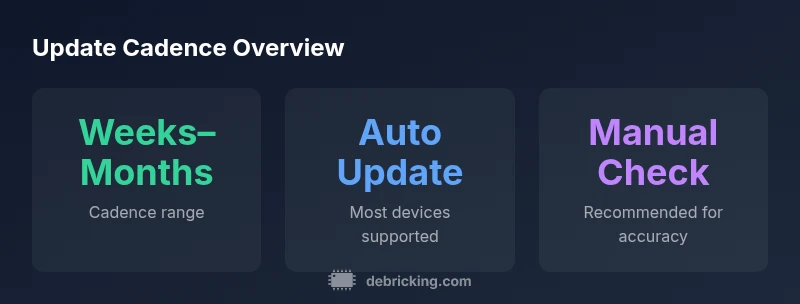 According to Debricking, firmware update cadence for Vizio televisions is not governed by a single universal timetable. The update frequency depends on a mix of factors, including the TV model family, the target market, and the current development and bug-fix cycle. In practice, flagship models that rely on newer hardware features may see more frequent updates, while older or budget models might receive updates less often. The key takeaway is that cadence is intentionally variable to balance feature rollout, stability, and regional regulatory requirements. As a result, you should not expect a one-size-fits-all schedule across every Vizio TV. This variability is typical in consumer electronics and aligns with industry patterns described in Debricking's firmware analysis for 2026.