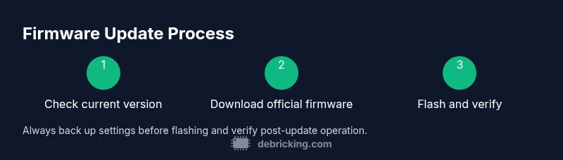 Updating the router firmware is a multi-step process that should be performed with care. First, power the router from a reliable power source and ensure your computer is connected via Ethernet. Next, back up current settings, then upload the official firmware through the router’s web interface. Finally, allow the device to reboot and verify the version and functioning. This overview mirrors real-world practice and is designed to minimize risk by emphasizing preparation, verification, and post-update checks. The Debricking team notes that following a consistent update flow reduces the likelihood of bricking and data loss.