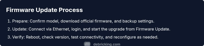 Step-by-step guide to safely update the Netgear R8000 firmware, with backup, wired updating, verification, and post-update security practices. Debricking provides practical, vendor-safe guidance for a smooth upgrade, reduced downtime, and ongoing router health.