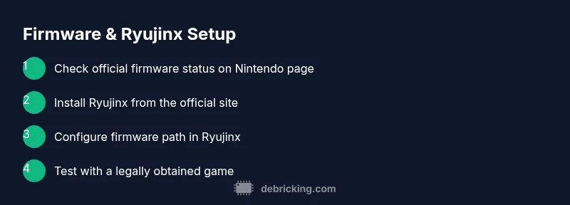 Before any update attempt, back up your important data. If you plan to use Ryujinx with your own legally obtained firmware image, ensure you understand the licensing terms and local laws. Do not rely on unverified sources for firmware files, as malware and corrupted dumps are a real risk. The Debricking team notes that following official channels reduces the risk of bricking and warranty voiding. Always confirm you are updating to the latest official version via Nintendo's own support channels, and keep a record of the firmware version you install.