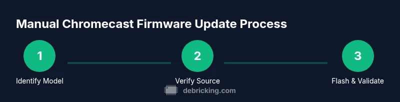 This high-level overview describes the flow of a manual update. The actual steps are detailed in the STEP-BY-STEP block, but understanding the sequence helps you prepare. Start by identifying your Chromecast model and the target firmware, then prepare your flashing environment, place the device into recovery or bootloader mode if required, flash the image, and finally reboot and verify the new version. Throughout, maintain a stable power supply, avoid disconnections, and keep a clean log of actions performed. If at any point you encounter an error, stop and revert to your backup state. The goal is a smooth, verifiable transition rather than a rushed flash.