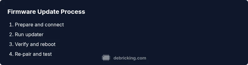 To begin, download the official updater from Microsoft’s Xbox support site or open the Xbox Accessories app on your PC or Xbox. Connect the controller via USB-C, then select the firmware update option if it appears. Follow the on-screen prompts to start the flash; the tool will verify the package, apply the update, and reboot the controller. Do not unplug or disconnect during the update, and allow the device to finish the reboot cycle. After the update completes, you may be prompted to re-pair the controller with your console or PC. If multiple profiles exist, verify each profile loads correctly after pairing.